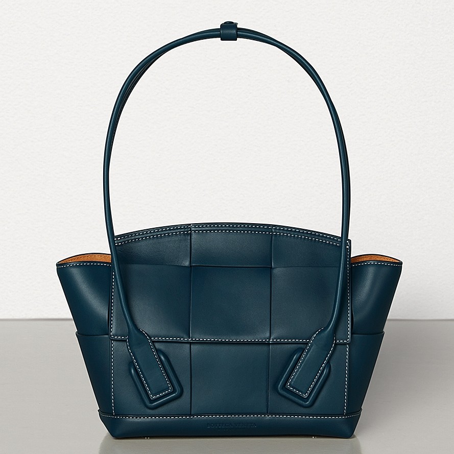 • Bottega Veneta Arco 33 Intrecciato Bag In Navy Blue Calfskin