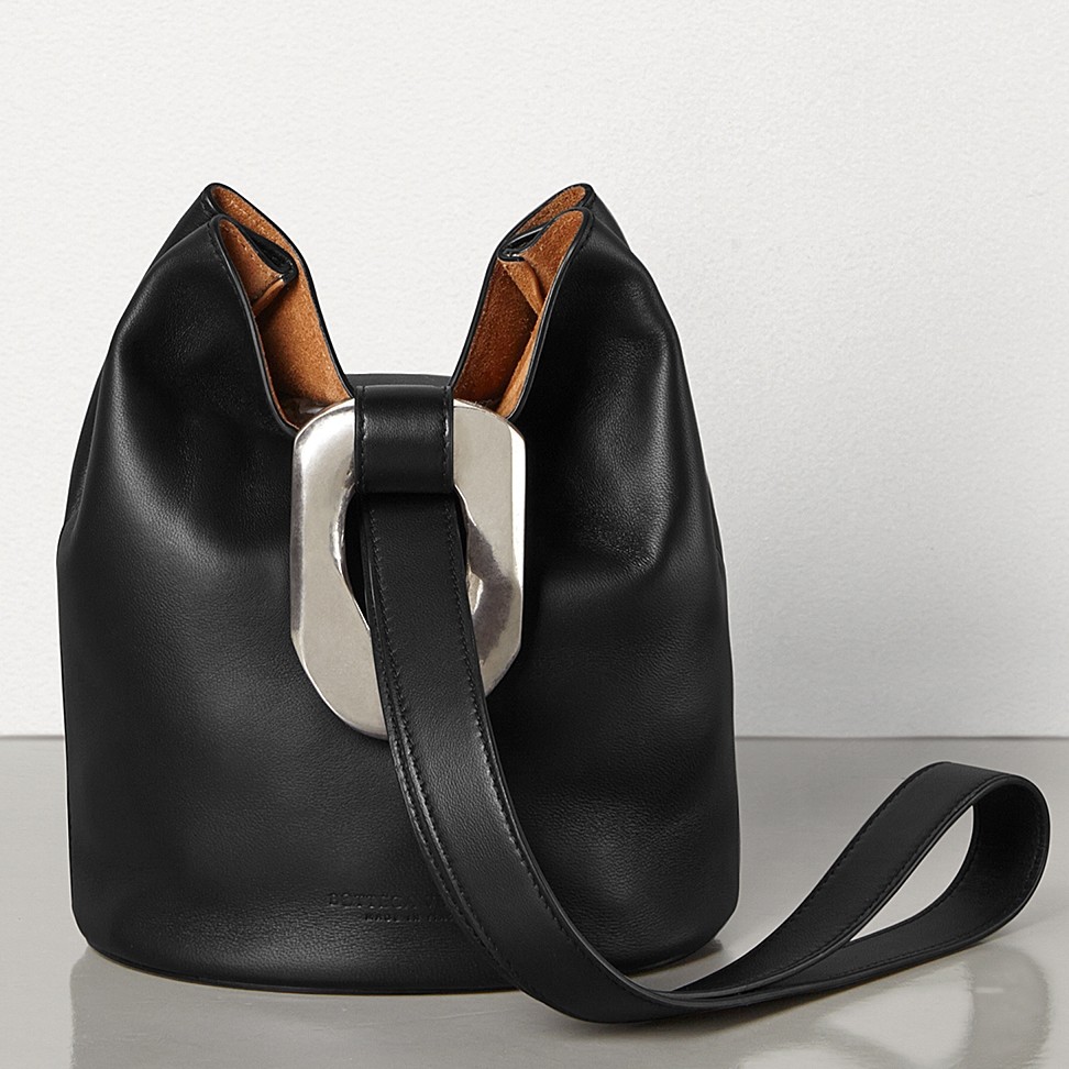 - 100% lambskin leather- Oversize chain link hardware- Hidden magnets- Leather string closure- Unlined with a bonded suede interior- Interior flat pocketSize: 17.5 x 21.5 x 13 cmComes with Bottega Veneta dust bag and authenticity card.