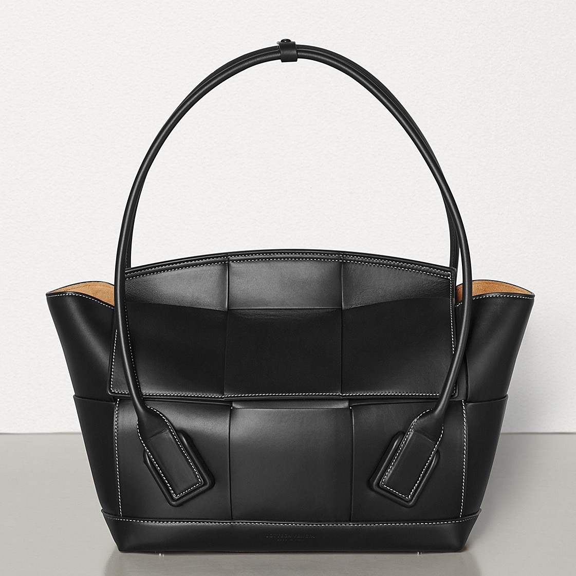 - French Calf with a natural finish- Arc-shaped top panel echoed by curved handles- Bonded suede interior with one zipped pocket and two open pockets- Rolled leather handles secured with a snap-button leather loop- Finished with a fine contrast saddle stitchSize: 48(top length) x 32(base length) x 24 x 12 cmComes with Bottega Veneta dust bag and authenticity card.