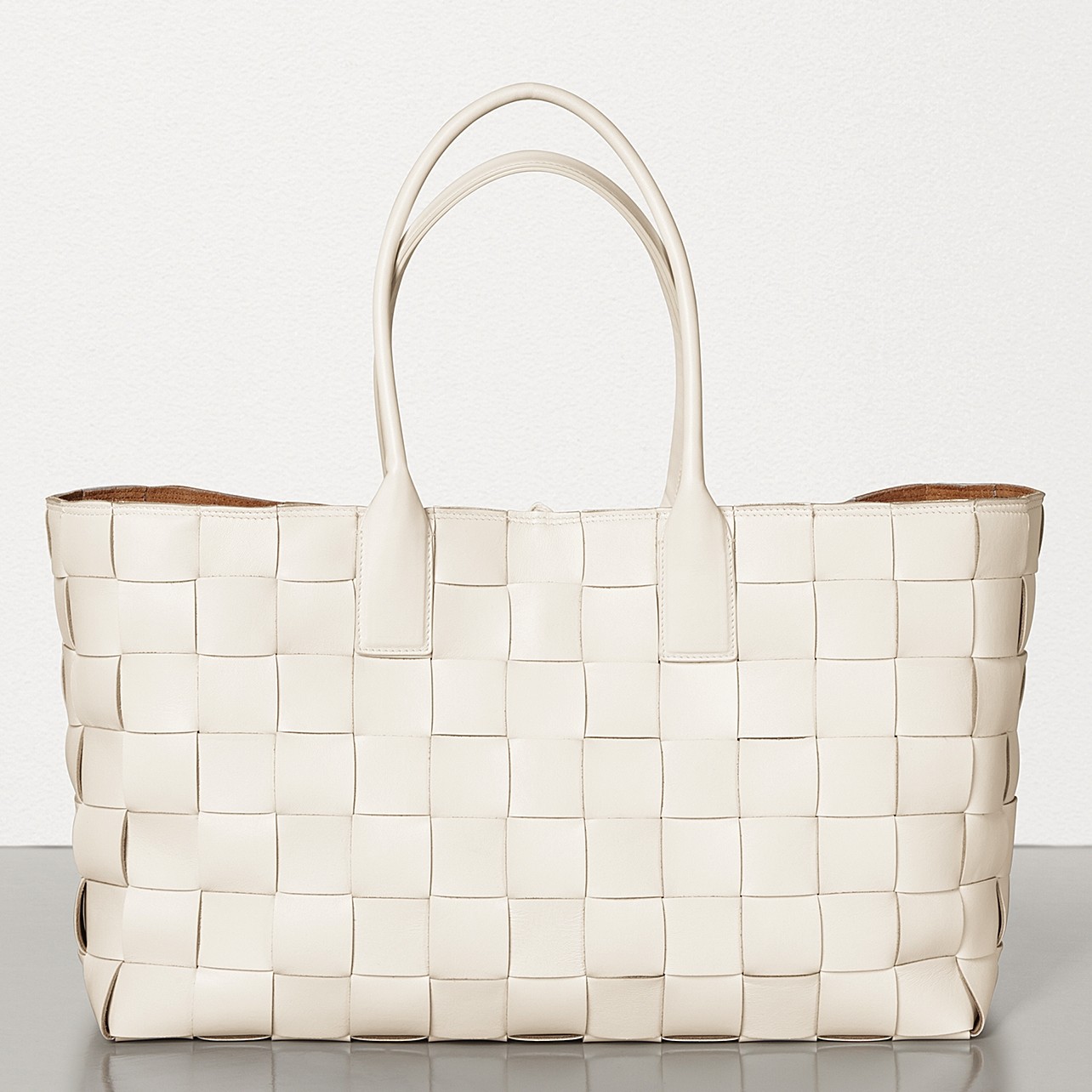 - Horizontal tote in an orthogonal maxi weave- An evolution of the Maxi Cabat- Nappa fettucce bonded with suede for a softer look- Interior zipped flat pocket- Includes a smooth nappa pouch that attaches to an interior ring- Rolled leather handles- Leather string closureSize: 45 x 28 x 16.5 cmComes with Bottega Veneta dust bag and authenticity card.