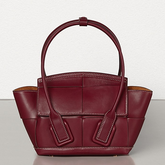 • Bottega Veneta Mini Arco 29 Bag In Bordeaux Weave Calfskin