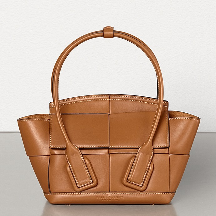 - 100% calfskin leather- Arc-shaped top panel echoed by curved handles- Rolled leather handles secured with a press-stud leather loop- Unlined interior with single zipped pocket- Rolled leather handles secured with a snap-button leather loop- Detachable adjustable shoulder strap- Finished with a fine contrast saddle stitchSize: 29(top length) x 17.5(base length) x 17 x 9 cmComes with Bottega Veneta dust bag and authenticity card.