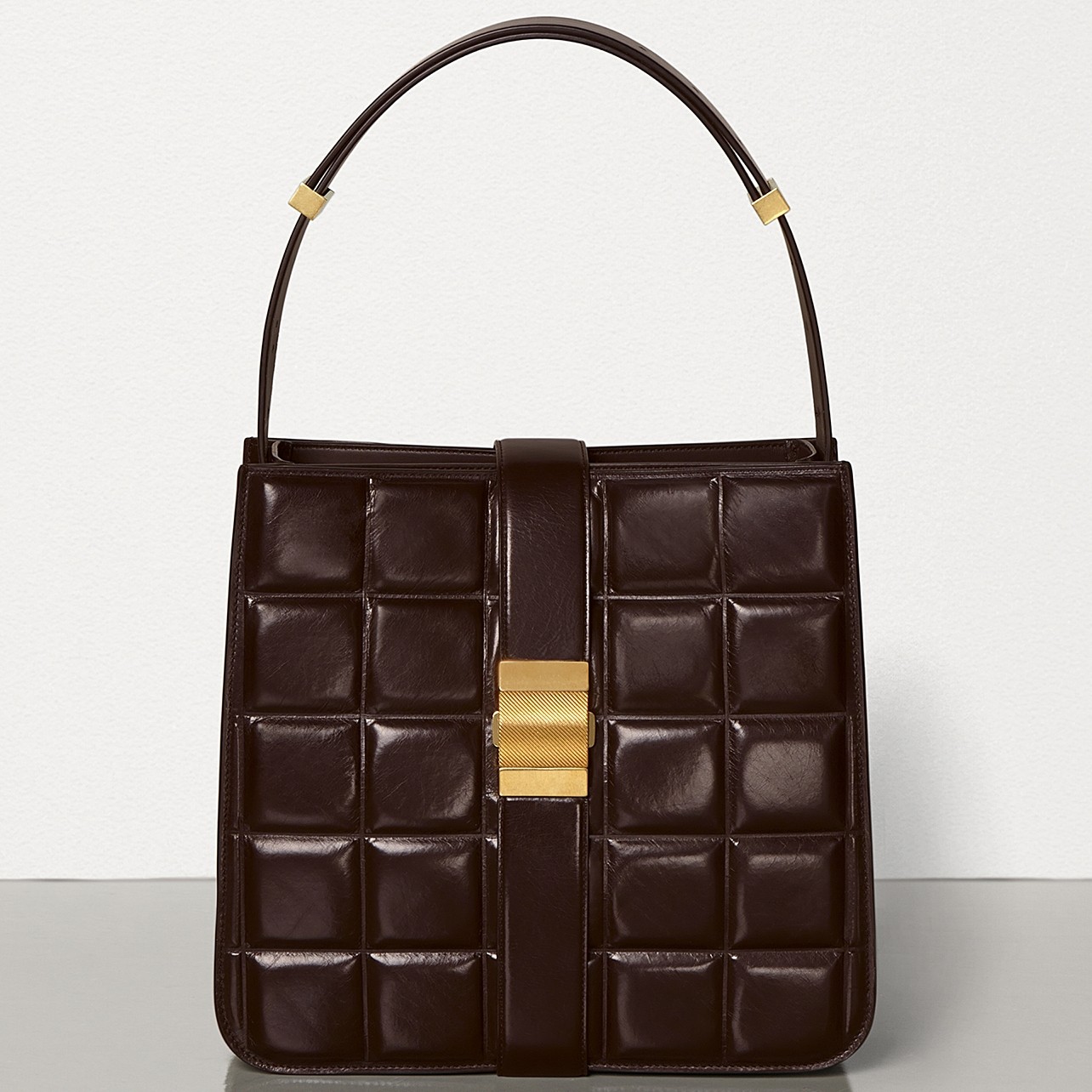 - Padded exterior in Paper Calf- Two external flat pockets; one interior zipped pocket- Engraved gold-finish hardware with push-button closure- Smooth bonded nappa interior- Adjustable strap secured with gold-finish hardwareSize: 30 x 28 x 7.5 cmComes with Bottega Veneta dust bag and authenticity card.
