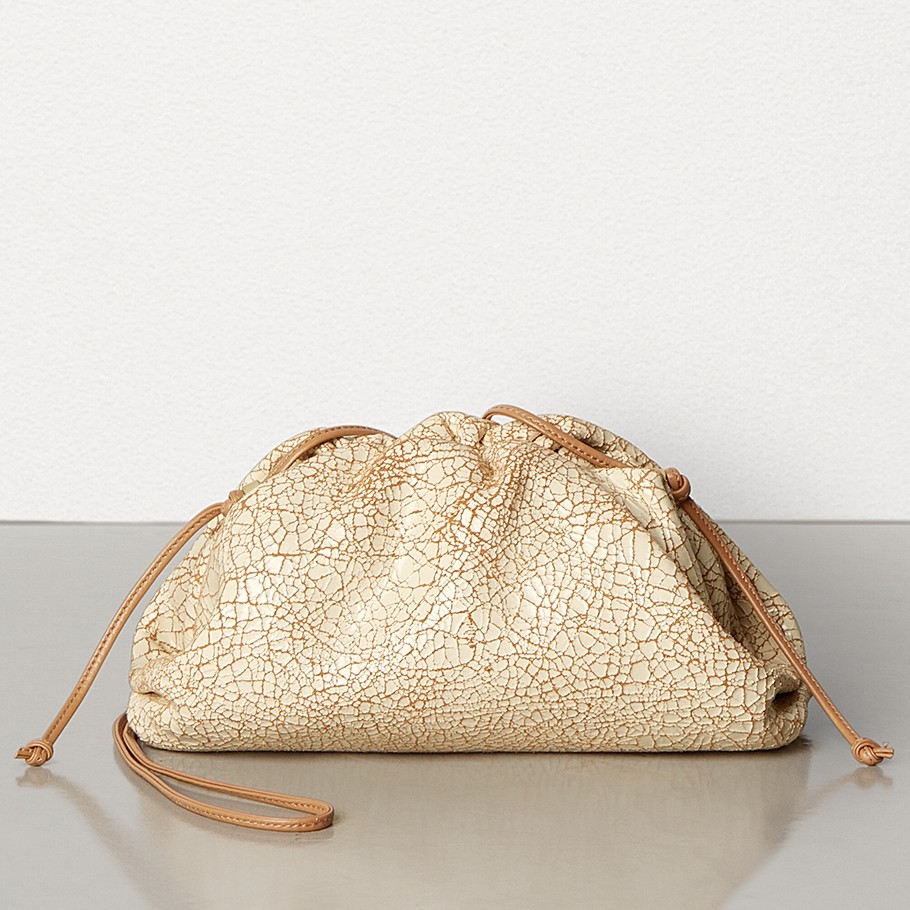 - Crackled leather- Magnetic frame covered in folds of crackled leather- Single compartment lined in calfskin- Slim leather shoulder strapSize: 22 x 13 x 5 cmComes with Bottega Veneta dust bag and authenticity card.