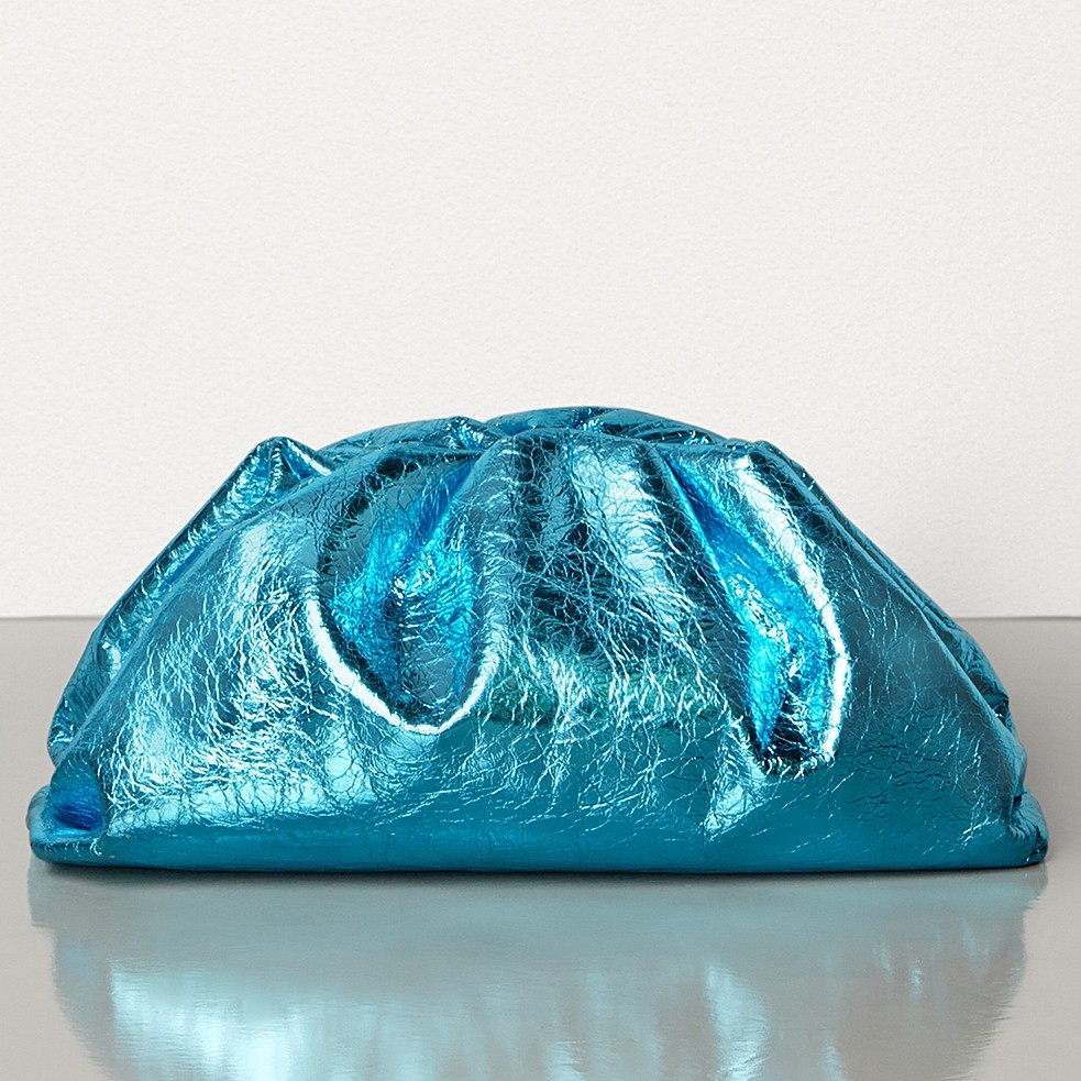 • Bottega Veneta The Pouch Clutch In Blue Metallic Leather