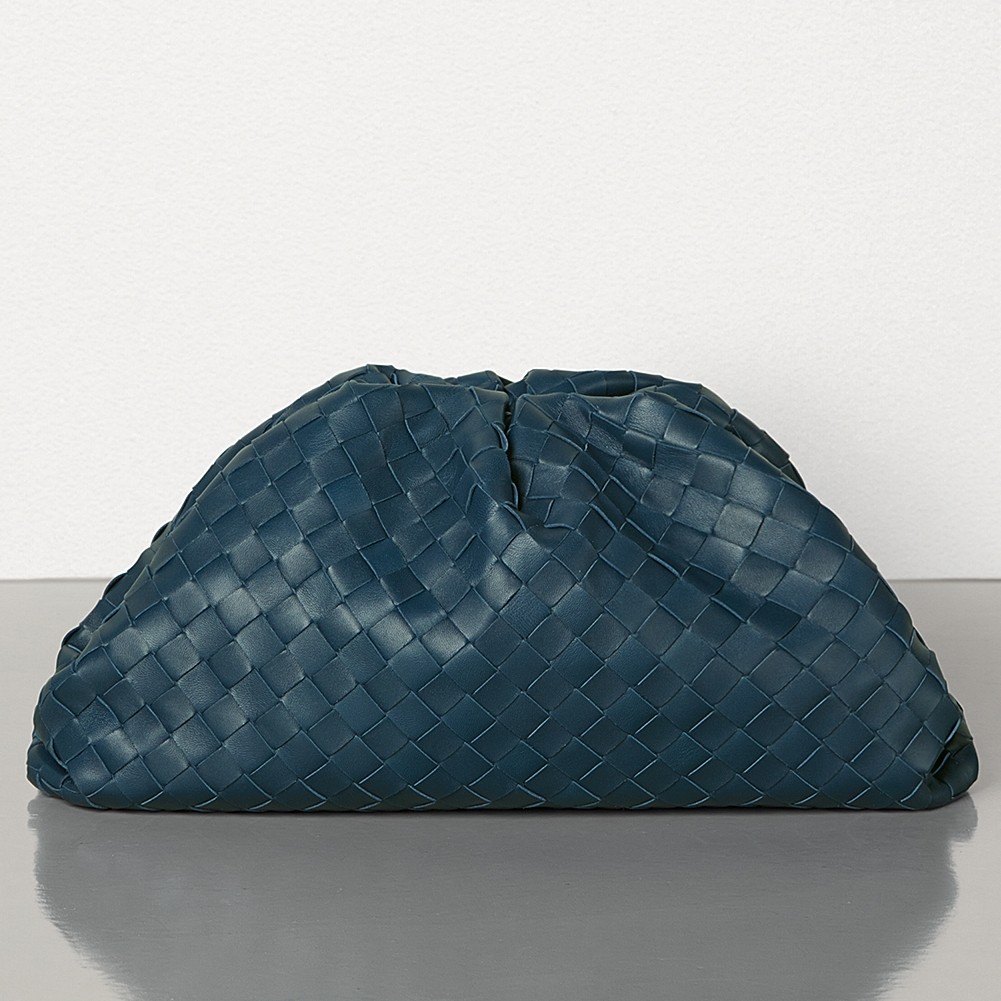 • Bottega Veneta The Pouch Clutch In Dark Blue Intrecciato Leather