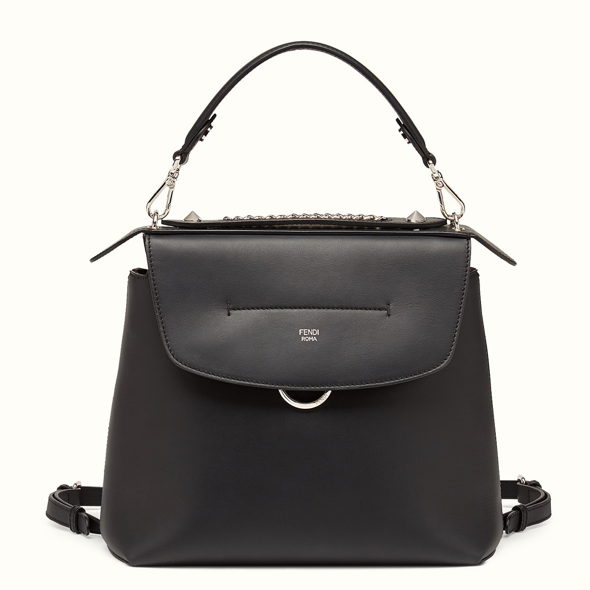 - 100% calfskin leather- Sliding-chain shoulder strap - Lock fastening - Interior two flat pocksSize: 29 x 23 x 12 cmComes with Fendi dust bag and certificate card.