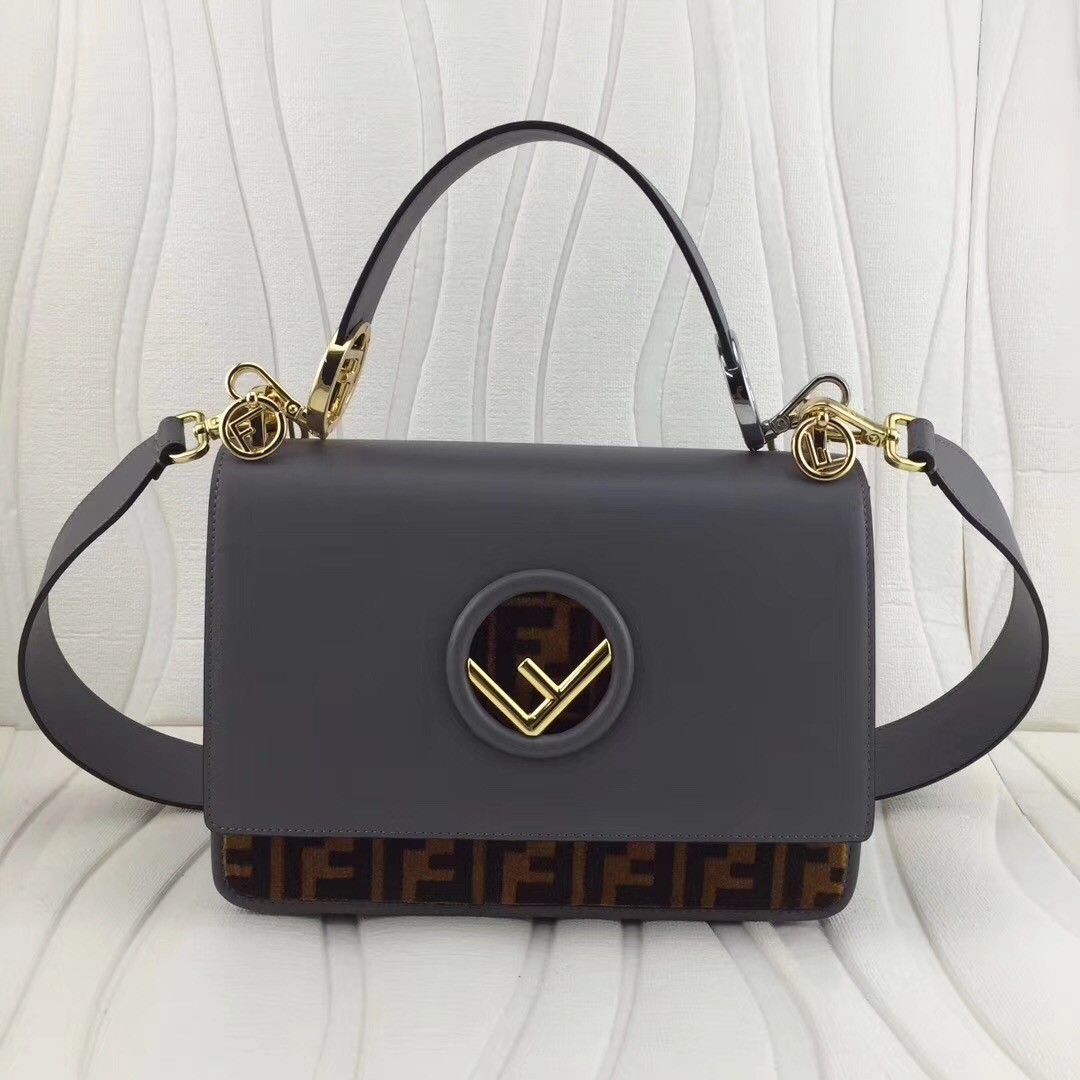 • Fendi Kan I F Shoulder Bag In Navy Calfskin With Printed FF Logo