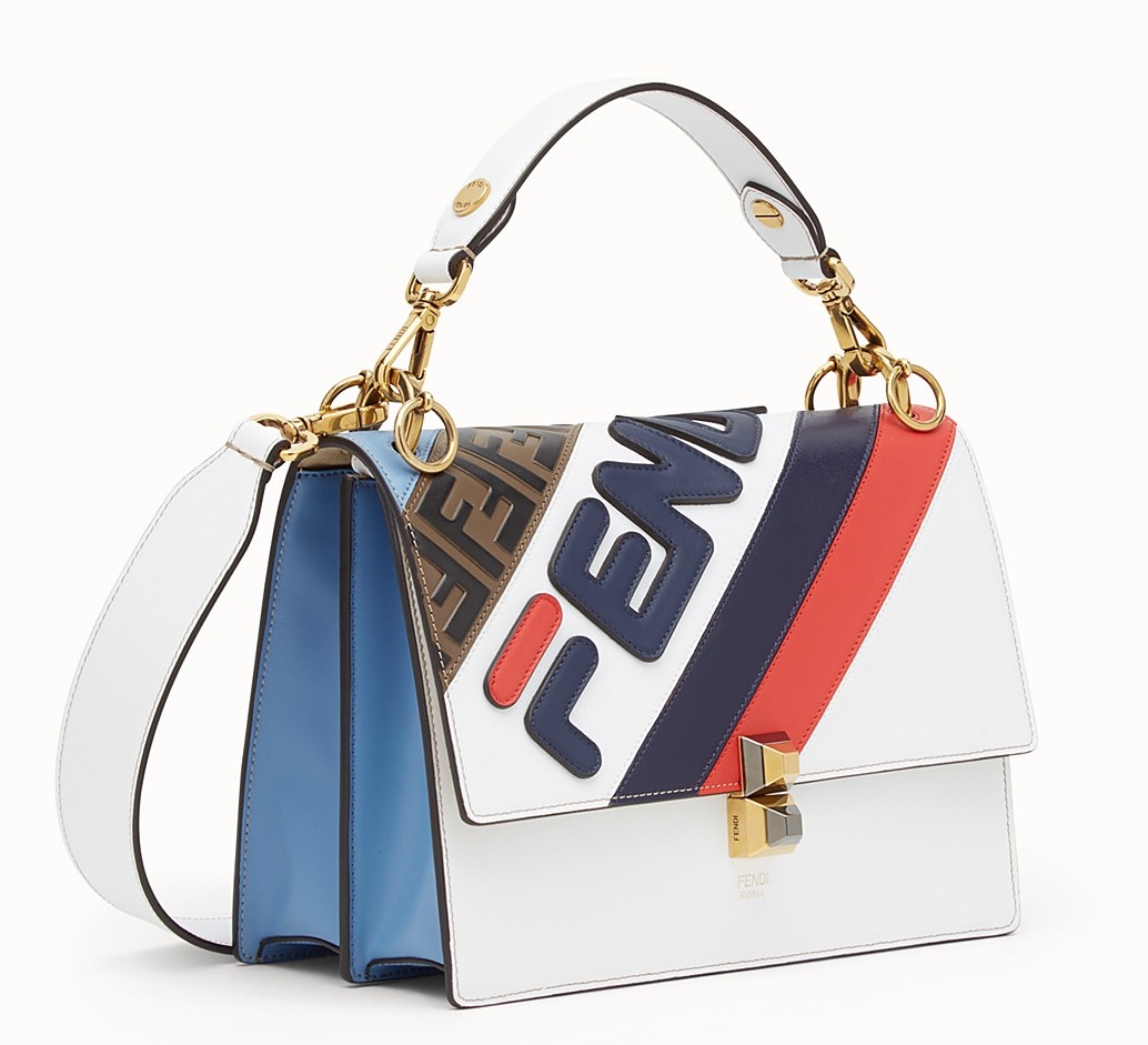 - 100% calfskin leather- Sliding-chain shoulder strap- Fastening with double studs in two-toned Plexiglas- Front flap decorated with multicolored Fendi Mania inlays and iconic embossed FF pattern- Gusseted interior features a pocket and two compartments divided by a stiff partition- Vintage-gold finishSize: 25 x 19 x 11 cmComes with Fendi dust bag and certificate card.