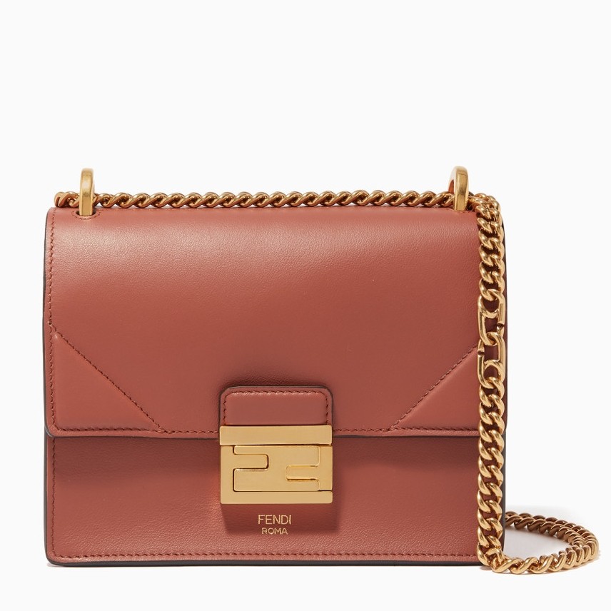 - 100% calfskin leather- Front flap with iconic FF press-stud fastener- Sliding-chain shoulder strap- Leather lining with flat pockets- Gold-finish metalwareSize: 19 x 13 x 9 cmComes with Fendi dust bag and certificate card.